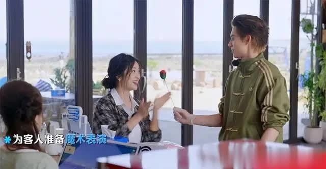 沈月心思细腻敏感,追求完美还容易自我怀疑,服务客人时格外用心,没做好就偷偷难过,得到认可后反而忍不住落泪,像极了被骂硬撑、被夸破防的我们。每次她情绪低落,最先察觉的总是王鹤棣,他不说大道理,只是安静地坐在身边轻拍后背,无声的陪伴胜过千言万语,这份无需多言的默契,是十年时光沉淀的礼物。而沈月也会默默兜底,提醒风风火火的王鹤棣注意细节,一个向前冲、一个稳后方,一个大大咧咧、一个温柔细致,这种互补的相处模式自然又舒服。